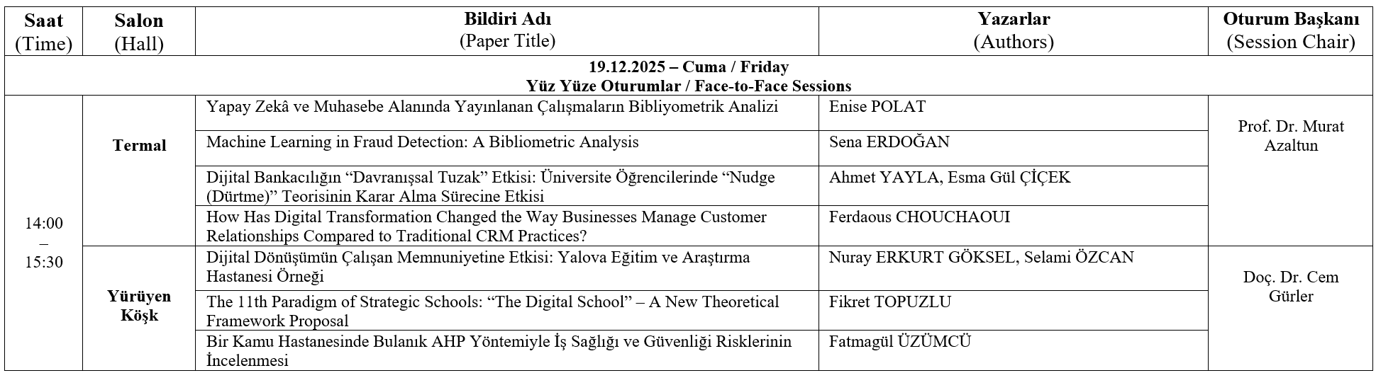14:00 – 15:30 Kongre Sunumları (2 paralel oturum) (Tüm Program ve Toplantı Linkleri için TIKLAYINIZ!)