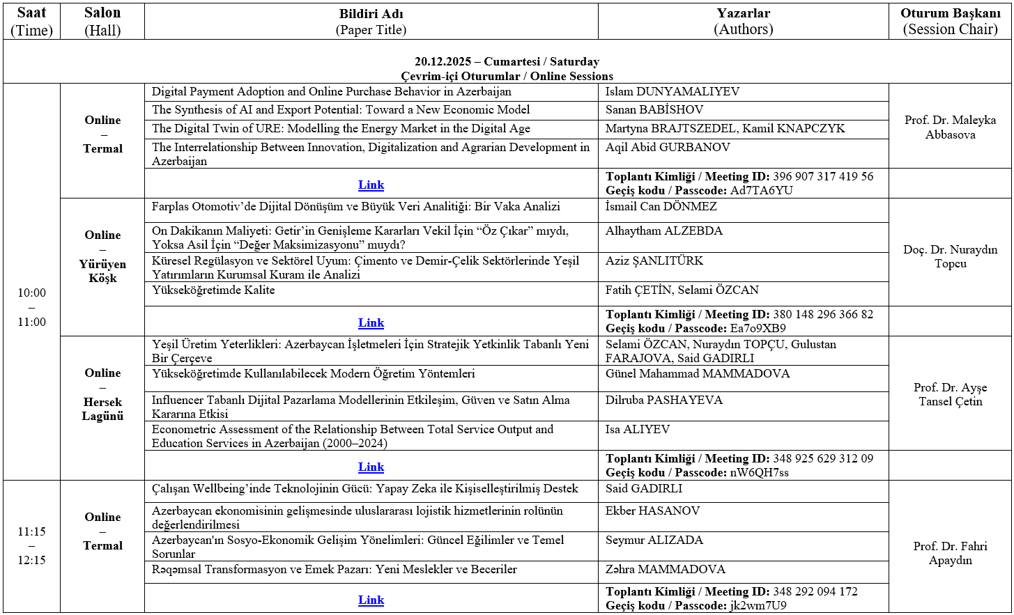 10:00 – 12:15 Kongre Sunumları (Online Katılım) (Tüm Program ve Toplantı Linkleri için TIKLAYINIZ!)